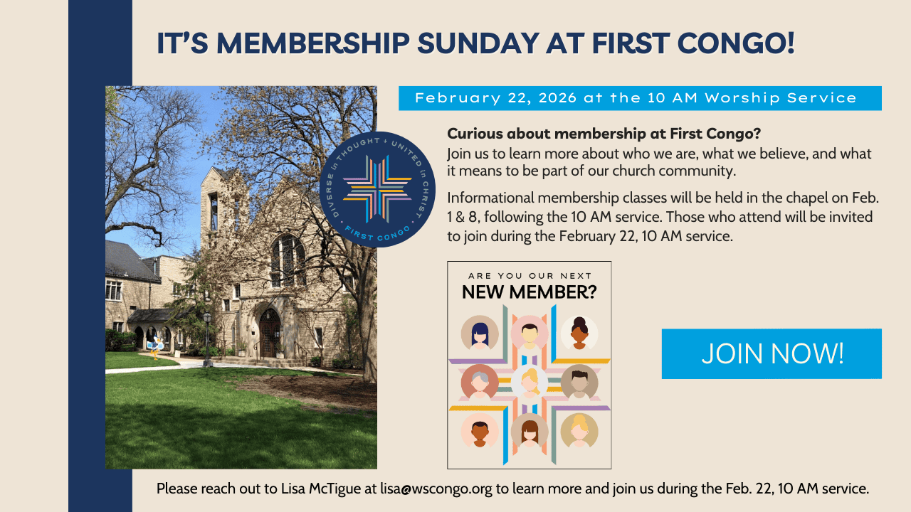 As we gather to worship God, it is good and right to remember whose land we worship on. Every community owes its existence and vitality to generations from around the world who contributed their hopes, dreams, and energy to making the history that led to this moment in time. Some were brought here against their will, some were drawn to leave their distant homes in hope of a better life and religious freedom, and some have lived on this land for more generations than can be counted. Truth and acknowledgement are critical to building mutual respect and connection across all barriers of heritage and difference. In the spirit of our Covenant of Inclusion and to honor the truth, we acknowledge we are standing of the ancestral lands of the Potawatomi (Pot-tah-WAH-tah-mee), the Ojibwa (Oh-JIB-way) and the Odawa (Oh-DAH-wah). Let us pay our respects to their elders past and present.