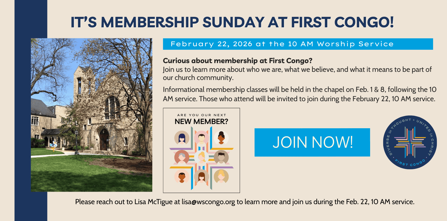 As we gather to worship God, it is good and right to remember whose land we worship on. Every community owes its existence and vitality to generations from around the world who contributed their hopes, dreams, and energy to making the history that led to this moment in time. Some were brought here against their will, some were drawn to leave their distant homes in hope of a better life and religious freedom, and some have lived on this land for more generations than can be counted. Truth and acknowledgement are critical to building mutual respect and connection across all barriers of heritage and difference. In the spirit of our Covenant of Inclusion and to honor the truth, we acknowledge we are standing of the ancestral lands of the Potawatomi (Pot-tah-WAH-tah-mee), the Ojibwa (Oh-JIB-way) and the Odawa (Oh-DAH-wah). Let us pay our respects to their elders past and present.