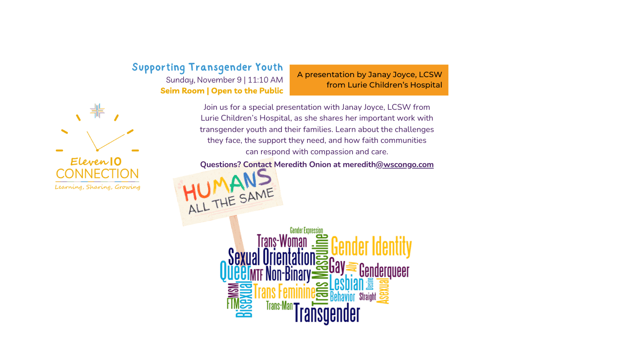 The Spirit lives within and around us all, no matter our gender, color, sexual orientation, age, or financial status. And so, we welcome you to come and experience the Spirit’s abiding presence and to deepen your faith with us. We can’t wait to meet you!