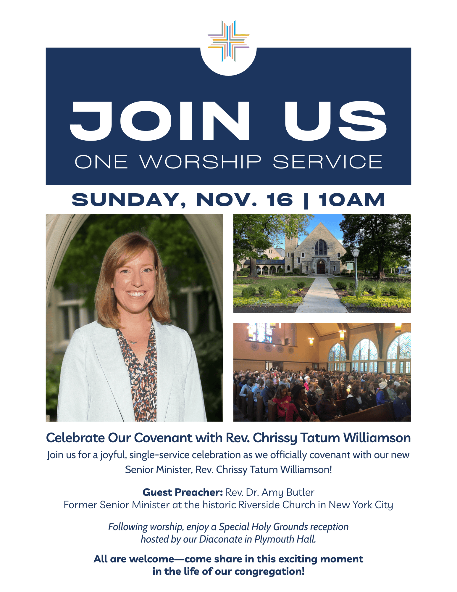 Calendar of Events Learn More about Rev. Chrissy Tatum Williamson, our new Senior Minister For more detailed information on upcoming events, such as our Words & Music events,please click here to visit our Events page.