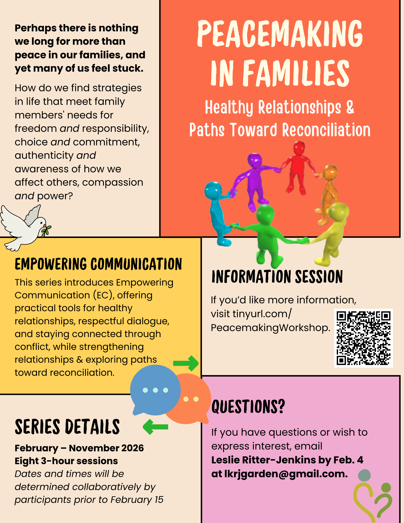 For more info, visit tinyurl.com/PeacemakingWorkshop.