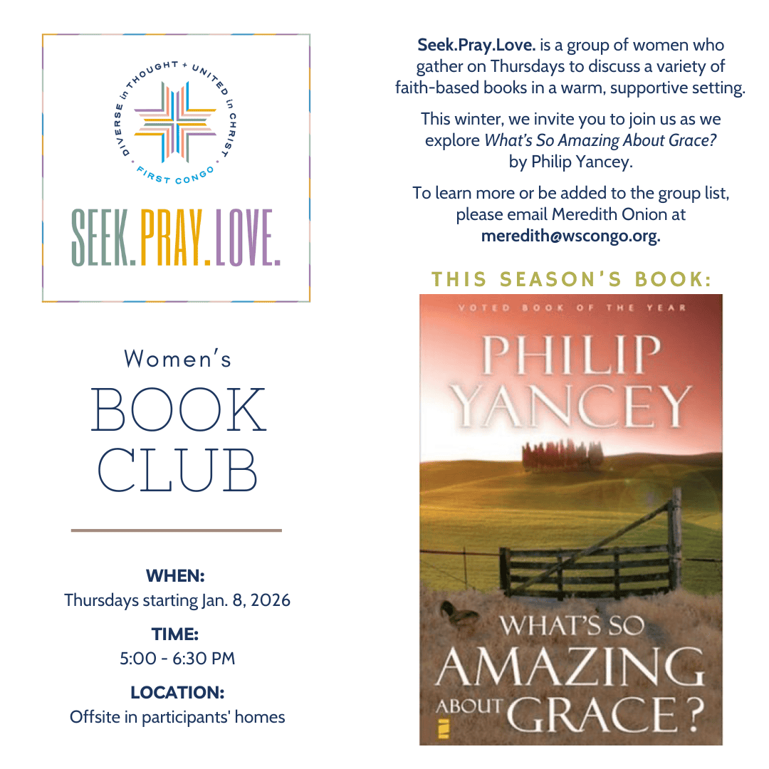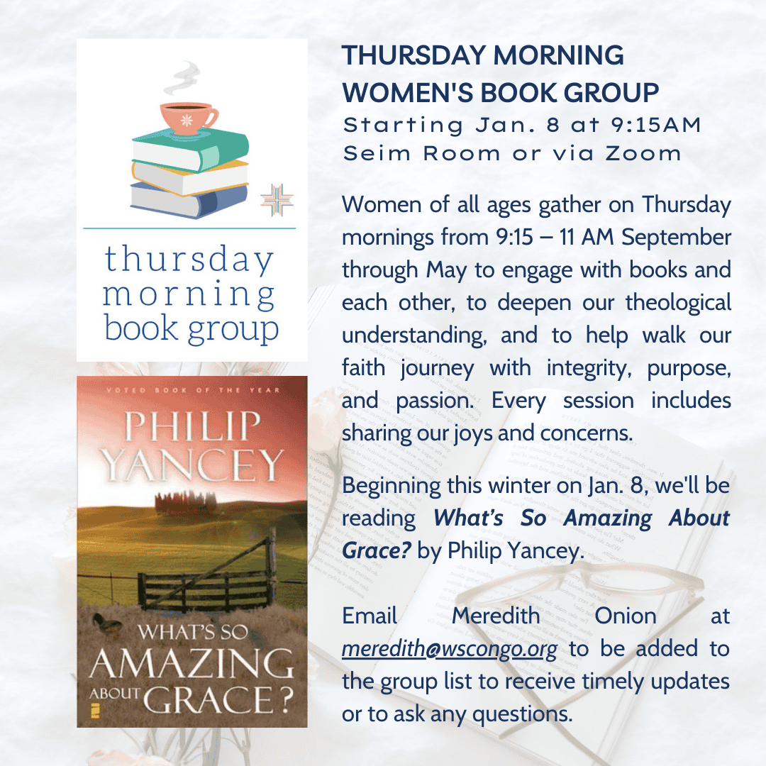Group discussions in the Parlor or Seim Rooms at 11:10AM following worship. Check the calendar for dates.