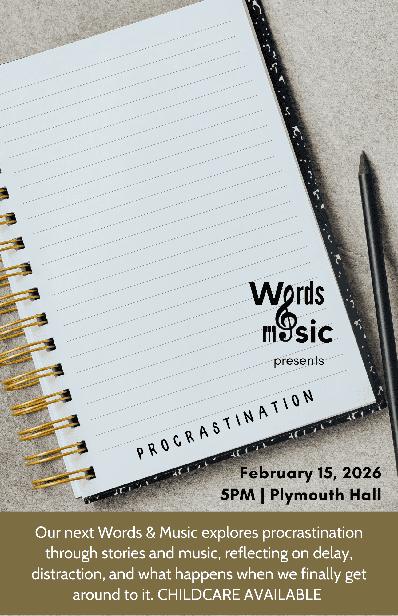 Words & Music explores the intersection of pop culture & faith through monthly, themed programs. We gather September–May, typically on the 2nd (sometimes 3rd) Sunday at 5 PM in Plymouth Hall. Interested in being a storyteller? Contact Ray Klemchuk.