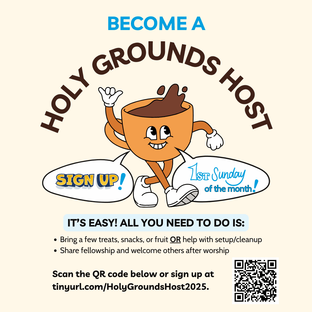 Your help is needed as a Holy Grounds Host. It’s simple: