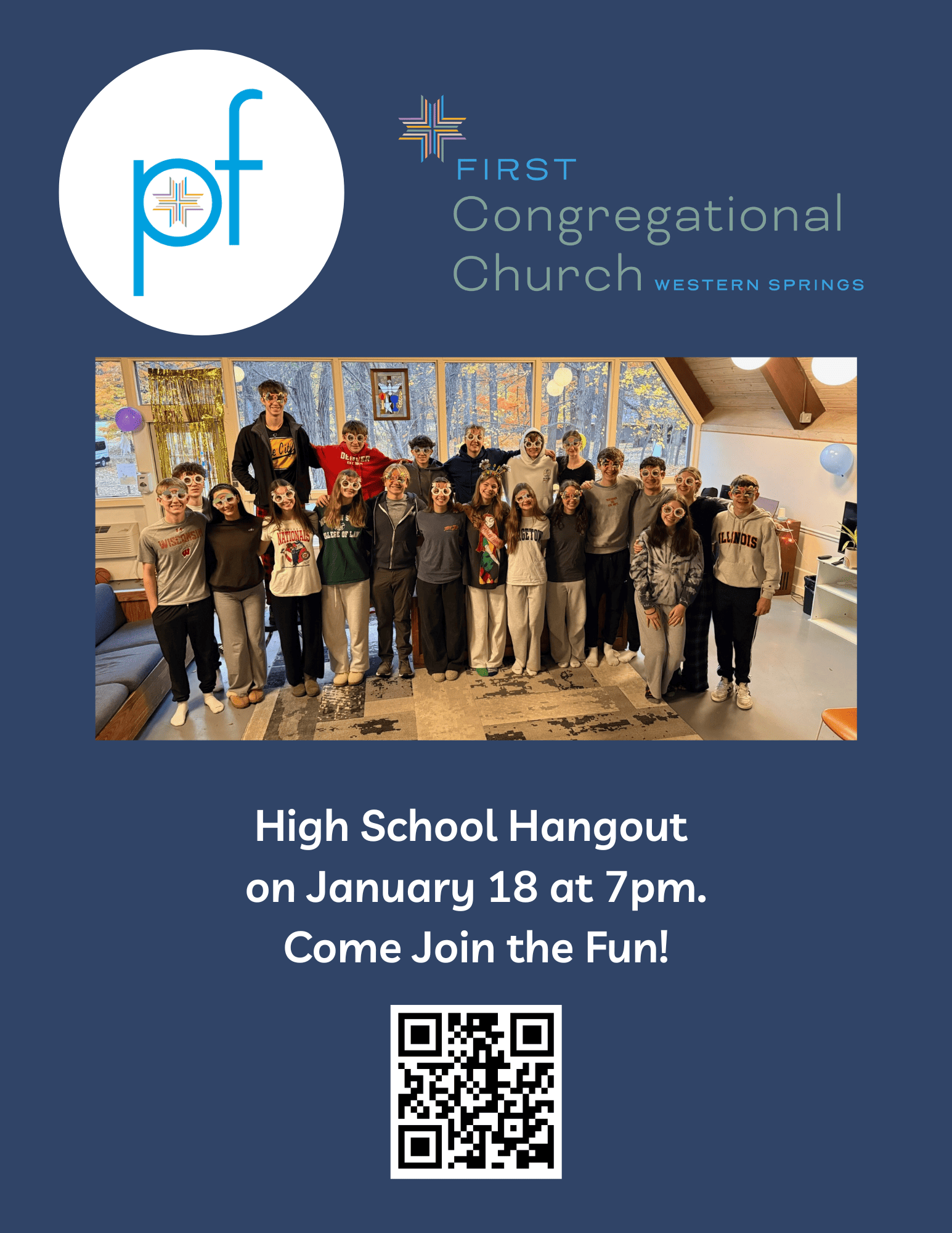 Plymouth Fellowship (PF) Youth Group is our youth group for high students (9th-12th grade). It is a place where kids can grow in their faith, build meaningful friendships, and serve their community in a fun and welcoming environment. Through discussions, service projects, and social events, we encourage students to ask big questions, and discover how God is at work in their lives. Whether we’re gathering for worship, engaging in small group conversations, or going on mission trips, our goal is to create a space where every student feels valued, supported, and challenged to live out their faith. All are welcome—come as you are and be part of something bigger!