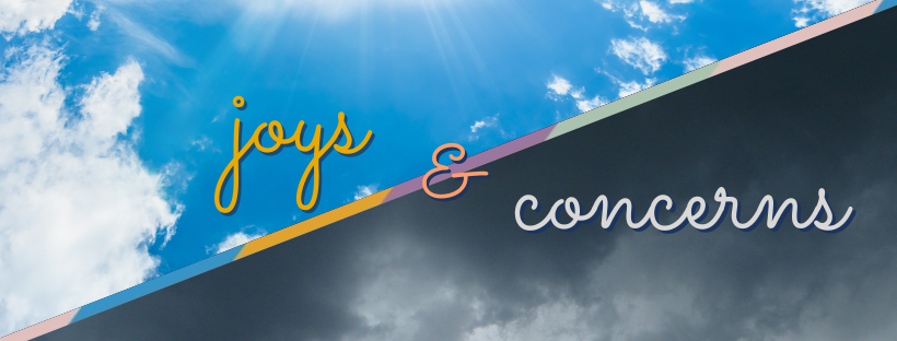 | If you have Joys & Concerns that you would like to share with the congregation in this weekly email, please email them to Meredith by Tuesday at 12PM. We try to include the joys and concerns of every church member. If we’ve somehow missed yours, please email Meredith so we can include it in next week’s edition.EMAIL YOUR JOYS AND CONCERNS |