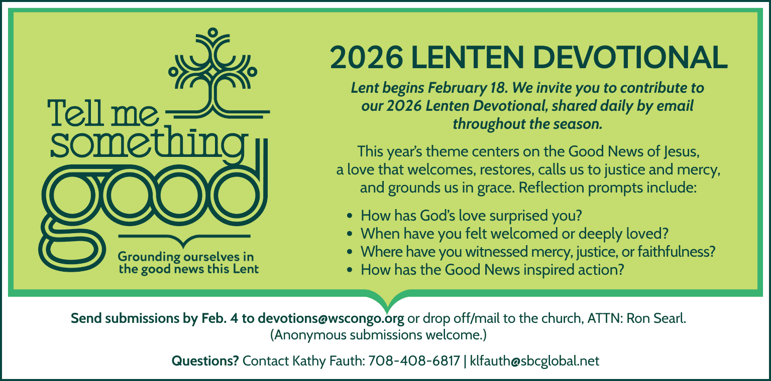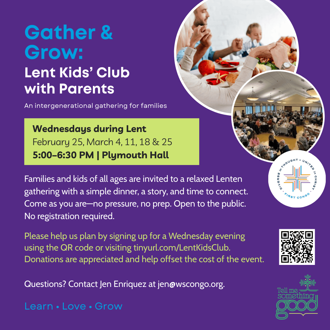 This good news is extravagant and alive. It grows like a mustard seed, is shared like bread among the hungry, sounds like laughter and mercy, and feels like love put into action. We hope this Lenten season roots our worship and conversations in the deep goodness of God, inspiring us to live and act as bearers of that good news in the world.
