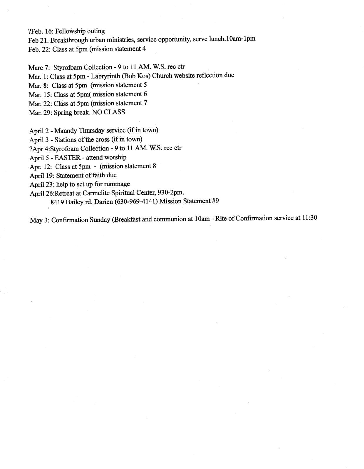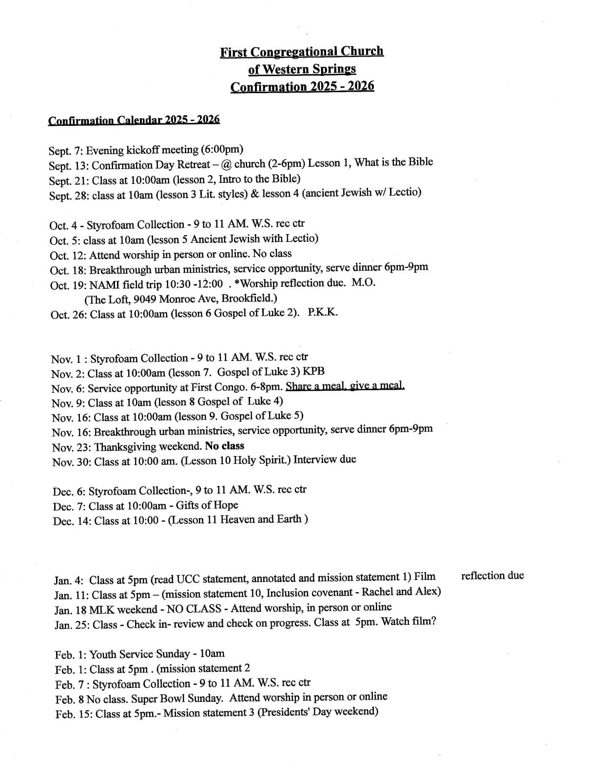 The class takes place on Sundays in the Youth Room. There will be discussions, activities, service projects, field trips, and reflection to guide their formation as Christians. If you have questions, or want to get involved, please contact Hope Sabbath at hope@wscongo.org.